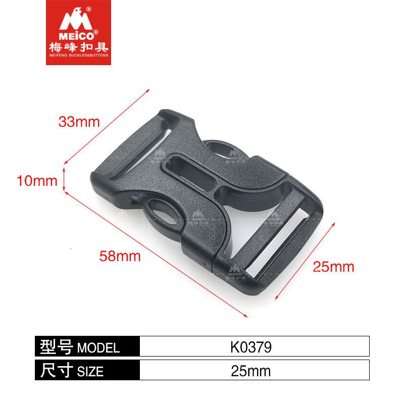 المادة: بولي أوم (POM) أو حسب طلب العميل. يُستخدم البولي أوم على نطاق واسع في مشبك الفتح الجانبي السريع.